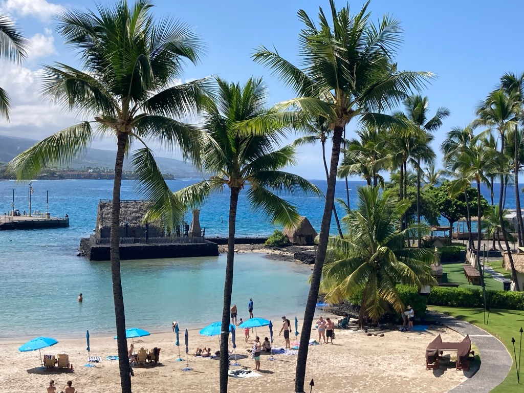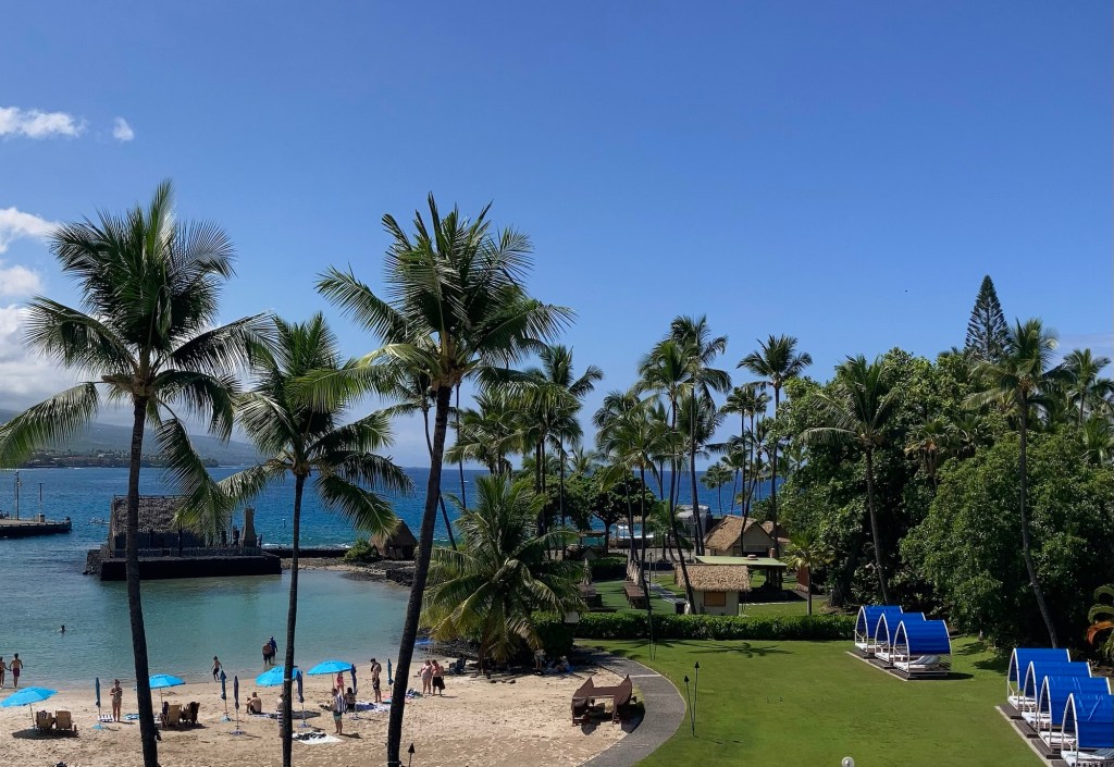 Thinking he’d better use his Hawaiian Airlines frequent flyer miles, DH booked a weekend in Kailua-Kona to celebrate our wedding anniversary—41 years of marriage. DH (darling husband), refers to himself as my easel, and this weekend was a test.
