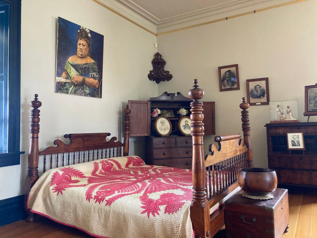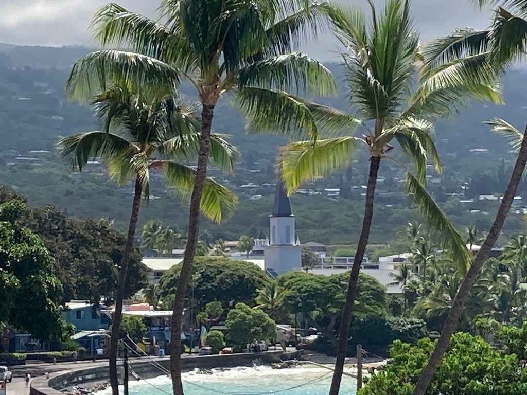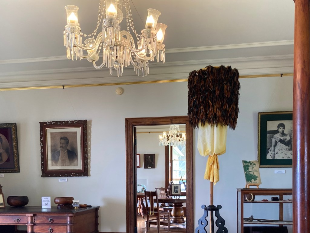 Balcony view Beach goers“Kamehameha the Great, 1815” by Herb Kawainui KaneMokuaikaua Church across the street from Huliheʻe Palace in KonaLauhala Mokuaikaua Church across the street from Huliheʻe Palace in KonaHuliheʻe Palace interiorHuliheʻe Palace interiorPrincess Ruth’s bedDetail of Queen Kapiʻolani’s sandalwood armoire Queen Kapiʻolani’s mirrored sandalwood armoireLooking toward Ahuʻena Heiau across Kailua Bay from Huliheʻe Palace Top view of a feathered kāhili at Huliheʻe PalaceSee descriptions in the next photo below