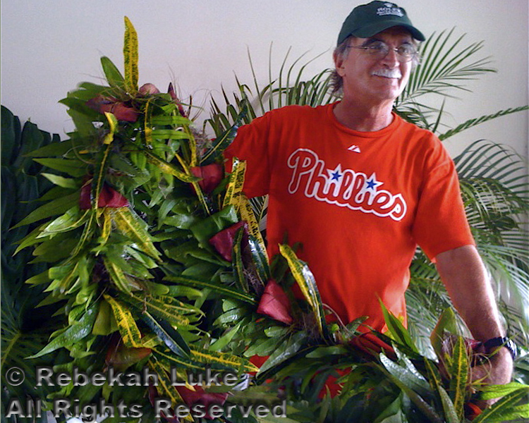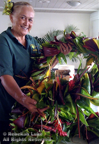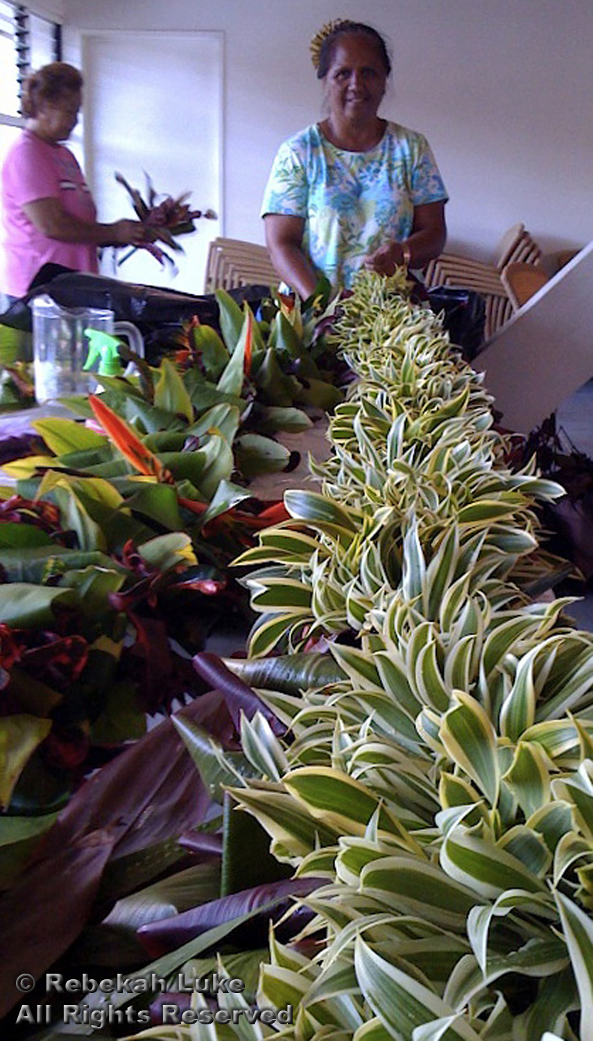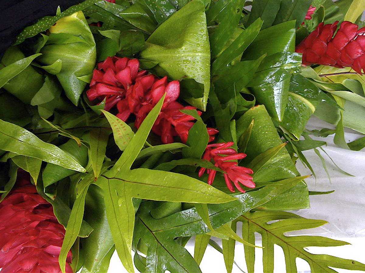In more recent years, I have partnered with Koolauloa Hawaiian Civic Club to supply the boat lei. Volunteer members and friends gather the plant material from their gardens and from the mountains, donating the material and their time to the project. Other members and friends, who are artistic and enjoy lei making, work professionally as floral designers for a few days and assemble the lei. The net proceeds from the sale of the lei provide scholarships for Native Hawaiian club members and/or their children.