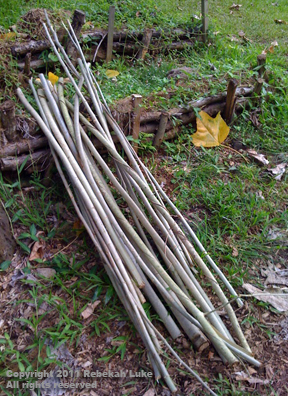 L to R: Improperly stripped hau bark; mid-way stage of scraping; still slimy and not white enough, i.e., there are more brown areas left to scrape out.