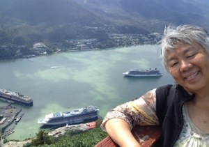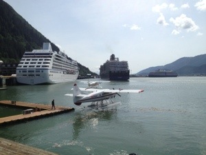 Five passenger cruise ships docked at Juneau, Alaska, this morning. The one I am traveling on has more than 3,000 passengers plus crew, so imagine how many visitors in all disembarked to give the town an economic boost!