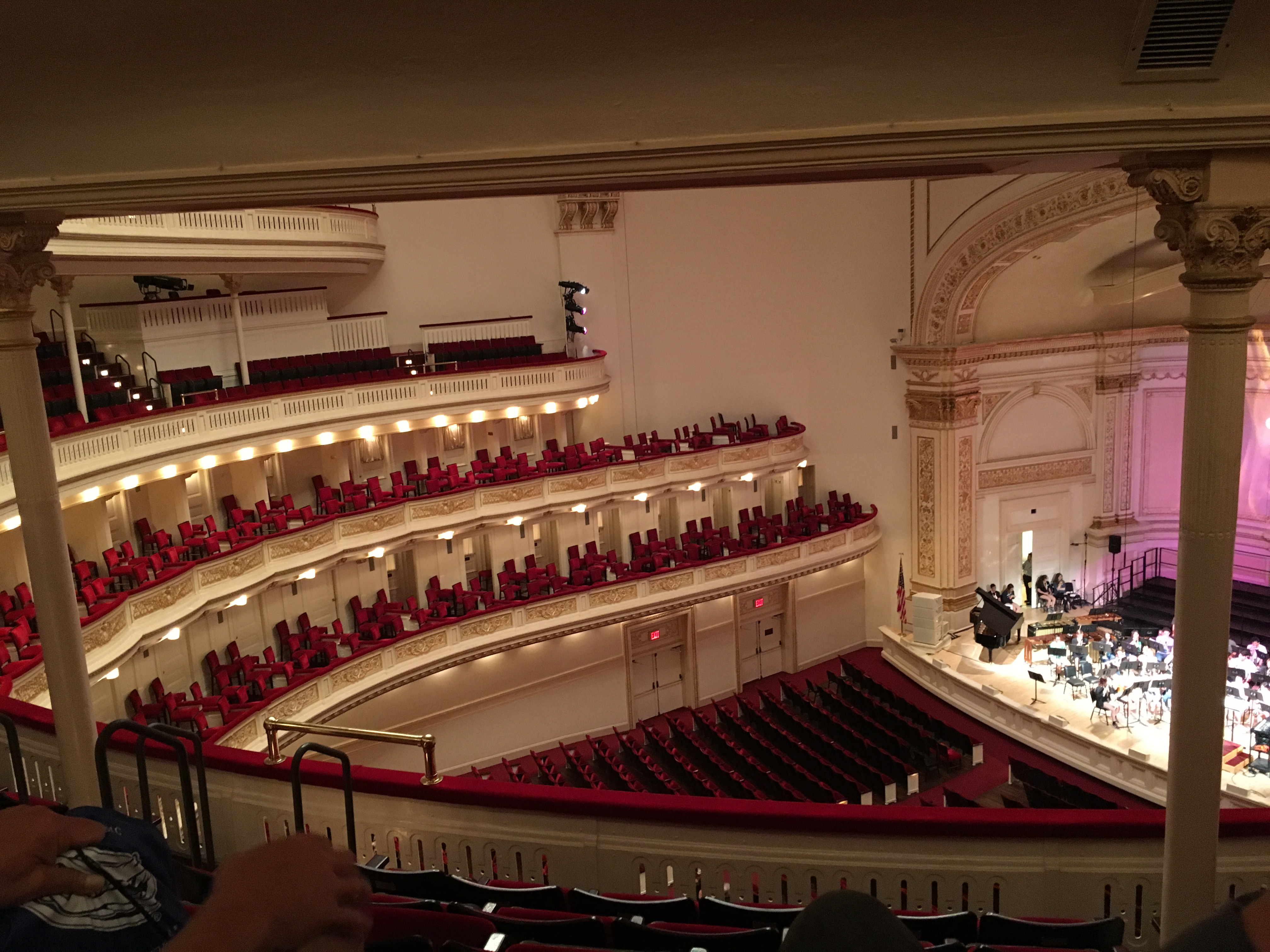 Red upholstered seats in Carnegie Hall