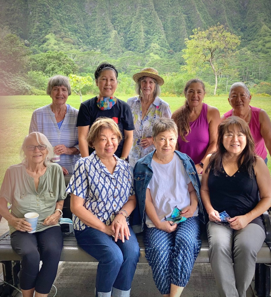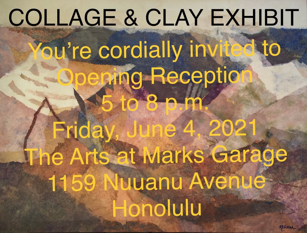 My cohorts and I create paintings from hand-dyed tissue paper after our teacher the late Susan Rogers-Aregger. I am fond of the piece above entitled “Crater View” that I made of the volcano.