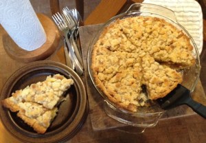 —As long as there was flour in the house I baked pizza, bread, and double-crusted dessert pies—apple and banana. And, as we have time, I cooked soup. Any leftovers could be frozen for later, I thought, but there weren’t any leftovers!