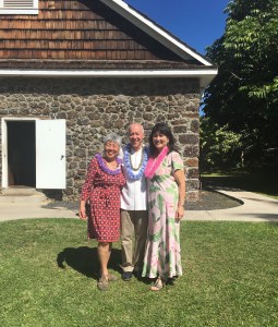 Mark Hayes with me and Rev. Danette Kong in the pink lei