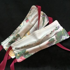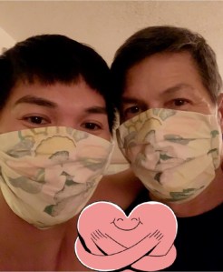 —Early on, I sewed washable face masks for hospital emergency room nurses who I know personally. Those are my cousins in the top photo. I used online instructions from three different websites. Luckily I have a sewing machine and materials. I turned cloth napkins and designer tea towels into cheerful PPEs.