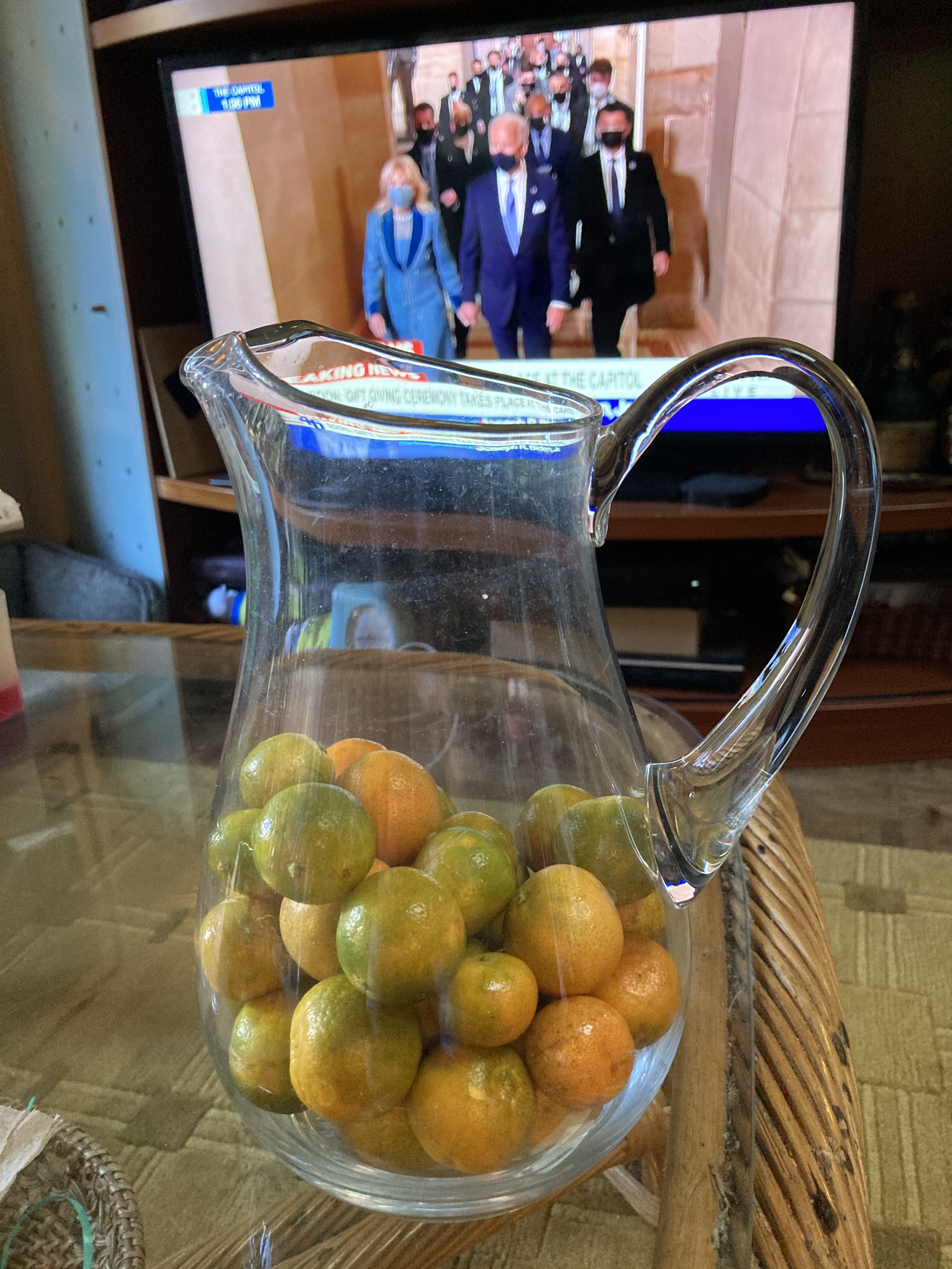 This morning has been refreshing with both a humble harvest of calamansi fruit from the garden and the ceremonies of the inauguration of United States President Joseph R. Biden, Jr., and Vice President Kamala Harris. Our family watched the event on live television in Hawai’i. Please pardon the juxtaposition.