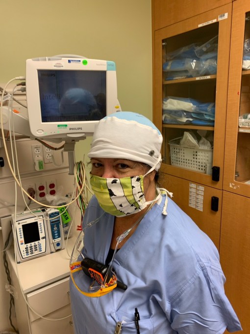 —Early on, I sewed washable face masks for hospital emergency room nurses who I know personally. Those are my cousins in the top photo. I used online instructions from three different websites. Luckily I have a sewing machine and materials. I turned cloth napkins and designer tea towels into cheerful PPEs.