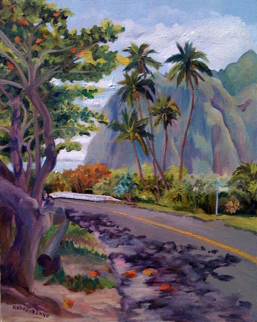 “Kamehameha Highway at Kaaawa Place,” 16″ x 20″ Oil on Canvas by Rebekah Luke