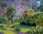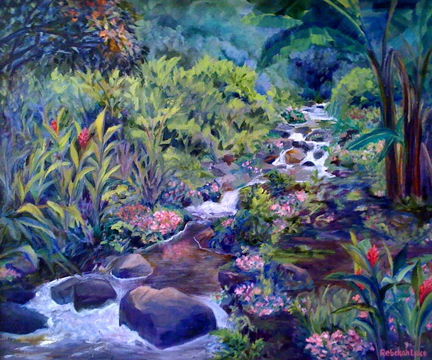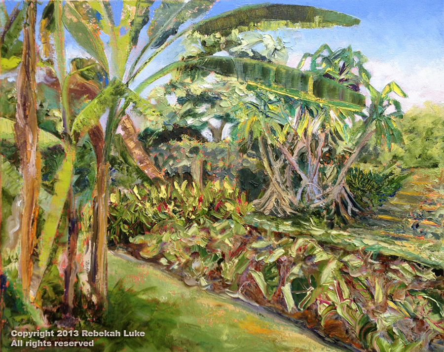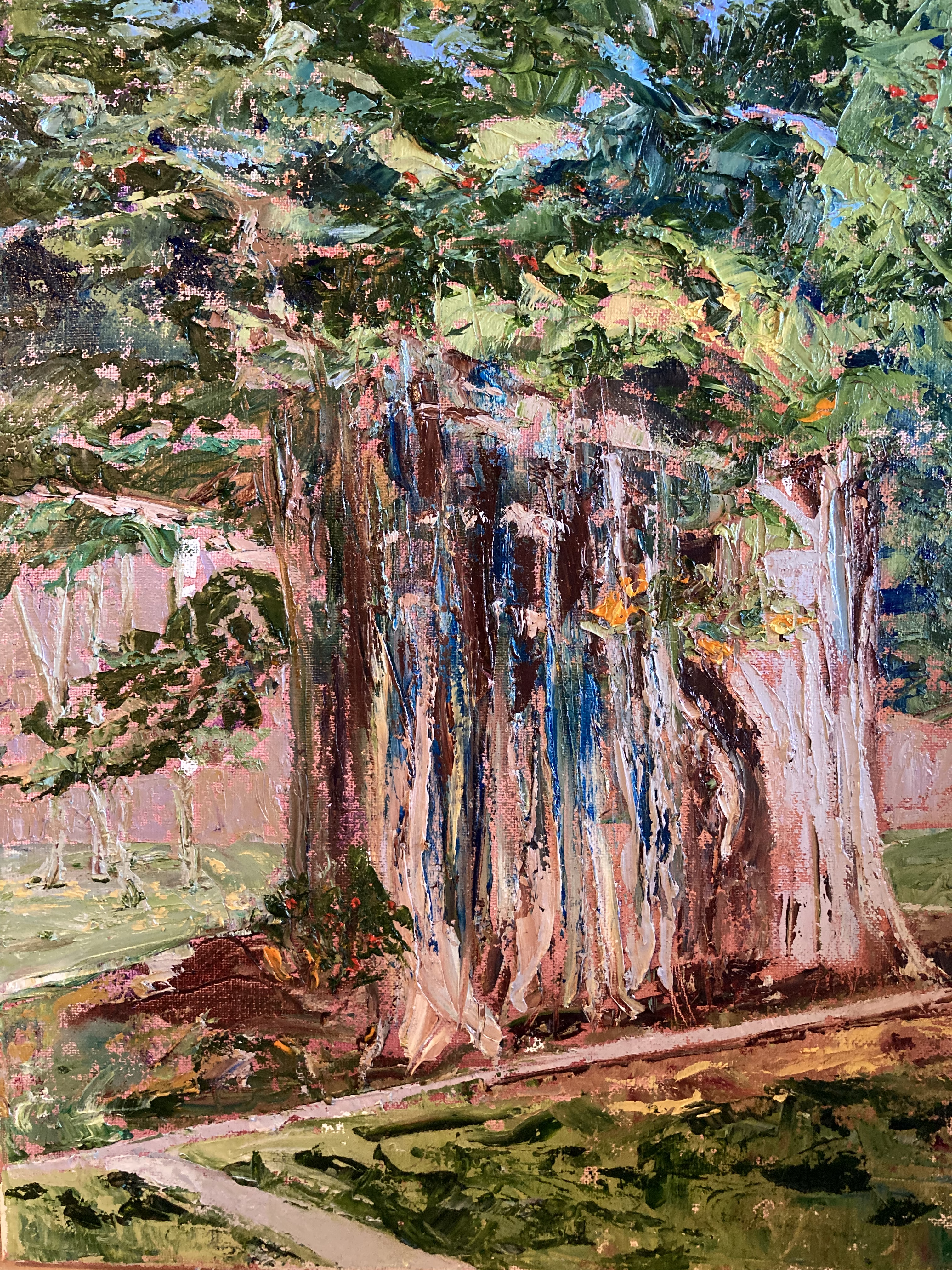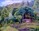 There was a 5-year hiatus from 1998-2002 when I concentrated my energy on developing the Hale Kū‘ai Cooperative that bought and sold Native Hawaiian made products. In 2003 I began to paint regularly in the landscape of Ho‘omaluhia Botanical Garden in the Luluku area of Kāne‘ohe.