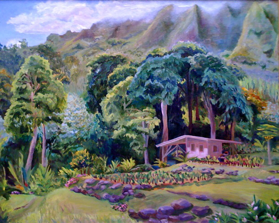 My most prolific period so far (35 original oils) was 1993-1994 when I devoted my time to recording Ka‘a‘awa town and the ‘ili of ‘Īoleka‘a on canvas. Most of the paintings from the one-person shows were purchased.