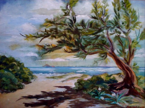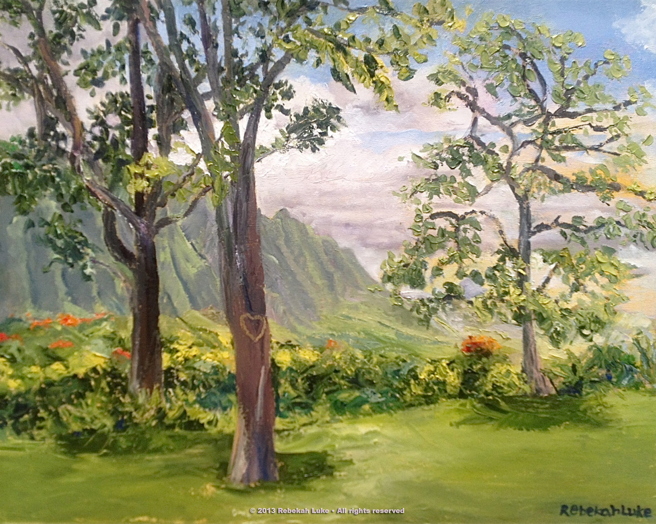 I sold my first oil painting in 1989 when I was 40. Uncle Walter bought “Garden at Moanalua” from the trunk of my car, and I was thrilled because he was a man of good taste. After he died I learned that my cousin Millie inherited it. I’m happy the painting is still in the family.