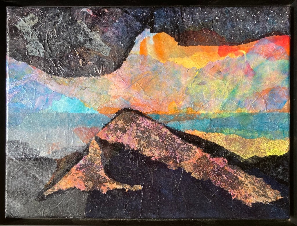 KA MAUNA—2024, 16” x 12” Hand-Dyed Tissue-Paper Collage on Canvas