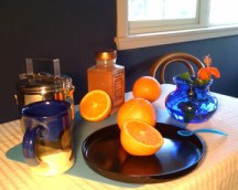In the photo, the longer plane of the butter dish is too “hot” from the bright morning sunlight hitting the surface straight on, coming in through a window reflected in the black vase. If I painted it, I would make it a lower value (a little darker, such as a pearly gray) but not as dark as the neighboring plane. I could/should have “burned in” that part of the photo before publishing it for a better image.