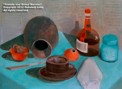 The tomatoes are analogous because to model their form they are painted with colors that are analogous on the color wheel. I teach the “Tomato Theory” so called by my late fine art teacher and oil painter Gloria Foss.