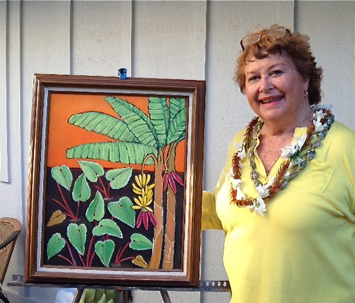 Leinani and her stylized painting of kalo and mai‘a (Jan McEwan photo)