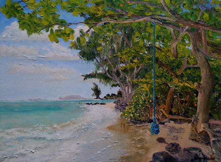 The Rope Swing. Painted at Kalaeokaoio Beach Park, Kaaawa. It’s historical. The swing is gone.