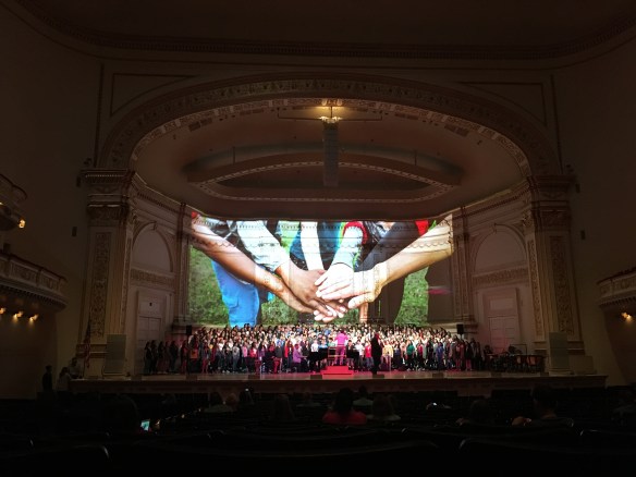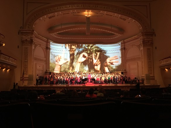 The Lincoln High School Harmonics choir from San Jose, CA, performed at the famous Carnegie Hall in New York City last Saturday night. What a thrill, not only to perform there, but to be part of a combined National Concert Chorus made up of ensembles from eleven schools (ranging from boys’ choir to some older adult singers), as well as to be conducted under the baton of two dynamic and sought-after conductors—Andrew W. Minear and Jeffrey Benson (read “rock star”).