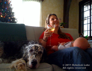 The butcher paper. She sponge-washed and dried the sheets all year. Then around Christmas she would finger paint on them. Sometimes she cut out designs from half a raw potato to make pretty stamps, like a Christmas tree or a sprig of holly. And sometimes she let me finger paint, too. I don’t recall ever playing with mud, but the feeling of finger paint oozing around my hands is probably like that. It was fun to decorate.