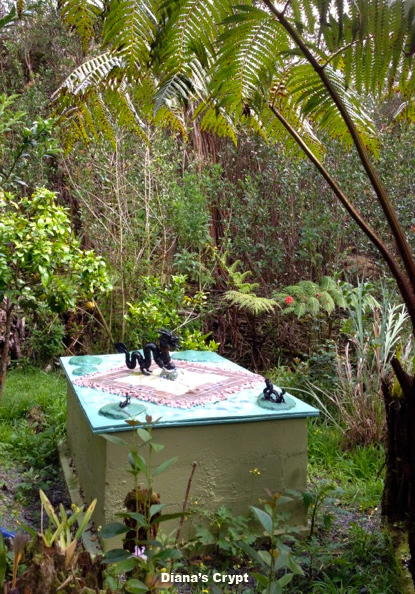 Before heading out for the day to explore some property, to go shopping, and to visit the Hawaii Volcanoes National Park where we bought our senior passes for life—yay, age has its privileges!—we went to see where Diana rests peacefully in a lovely setting.