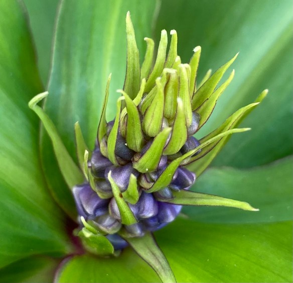 Coming out into the sunshine this morning, I noticed the blue ginger beside the front steps blooming. So tiny. I toured the garden and recorded more minis. Aren’t they pretty?