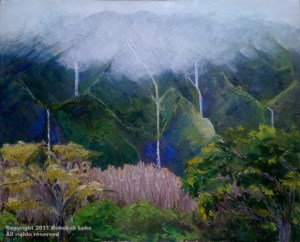 Hawaiian places — places you have been or places where you’d rather be — are my favorite subject. Each painting is a one-of-a-kind original (sorry, I haven’t made any reproductions) and comes with a frame ready to hang.