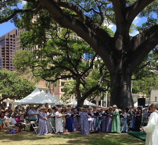 ʻIolani Palace grounds during the Friday noontime performance by the Royal Hawaiian Band draws an appreciative audience.