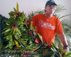Many years ago I became the volunteer chair of the Boat Lei committee for KYC. I’m affectionately known as the Boat Lei Lady! A boat lei is a giant 12-foot garland of fresh, tropical foliage to greet and honor the vessel that carried her skipper and crew safely across the ocean.