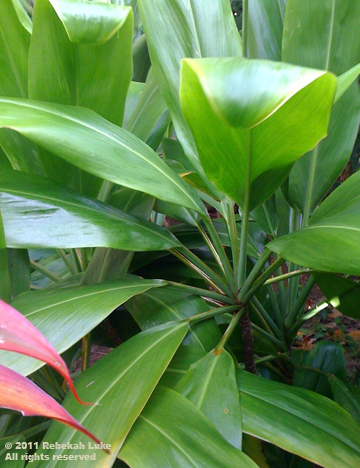 Green and red ti leaves. When picked from the stalk, they are called la‘i.
