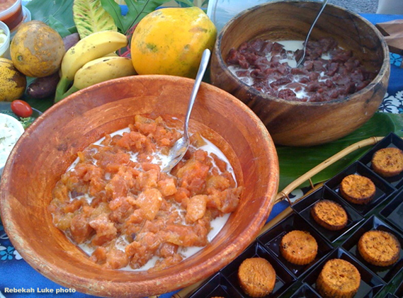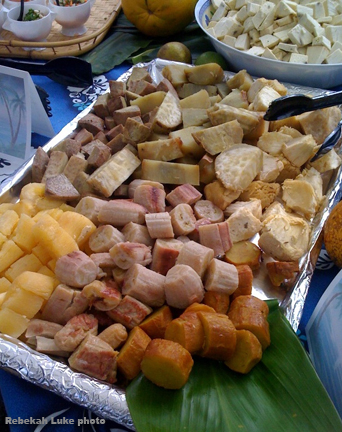 We settled on lai (say LAH-EEE, leaves from the ti plant), lauae (say LUH-AU-AY , a fragrant yet sturdy fern … Phymatosorus scolopendria, syn. Microsorium scolopendria), and multi-colored croton leaves. Our friend Kapa showed us how to use floral wire to bind the foliage; she learned the use of wire from her kumu hula. And Aunty Havana, who is a master at making hat lei, showed how to combine everything into lovely creations, once she figured out how to translate small to big. The lei became a product of the Co-op.