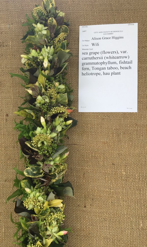 I apologize, I did not record the names of the lei makers, but I’m betting they are entering their creations again today.