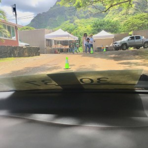 This morning was perfect for the “1st Annual Kaaawa Elementary School Ocean Warrior 5K Family Fun Run/Walk” in Kaaawa Valley, a short ways down the road from the studio. The film industry uses this location for movies and TV shows. This is the beautiful place where Miss Marvelous’s parents wed.