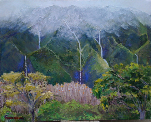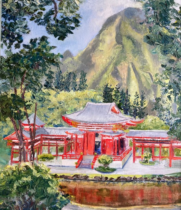 After sitting my gallery shift at the big Windward Artists Guild /Artists of Hawaii exhibit at the Honolulu Downtown Art Center today (still holiday shopping, anyone?), I’m heading back over the mountains for a neighborhood happy hour. Woohoo! By the way, today is DH’s birthday!