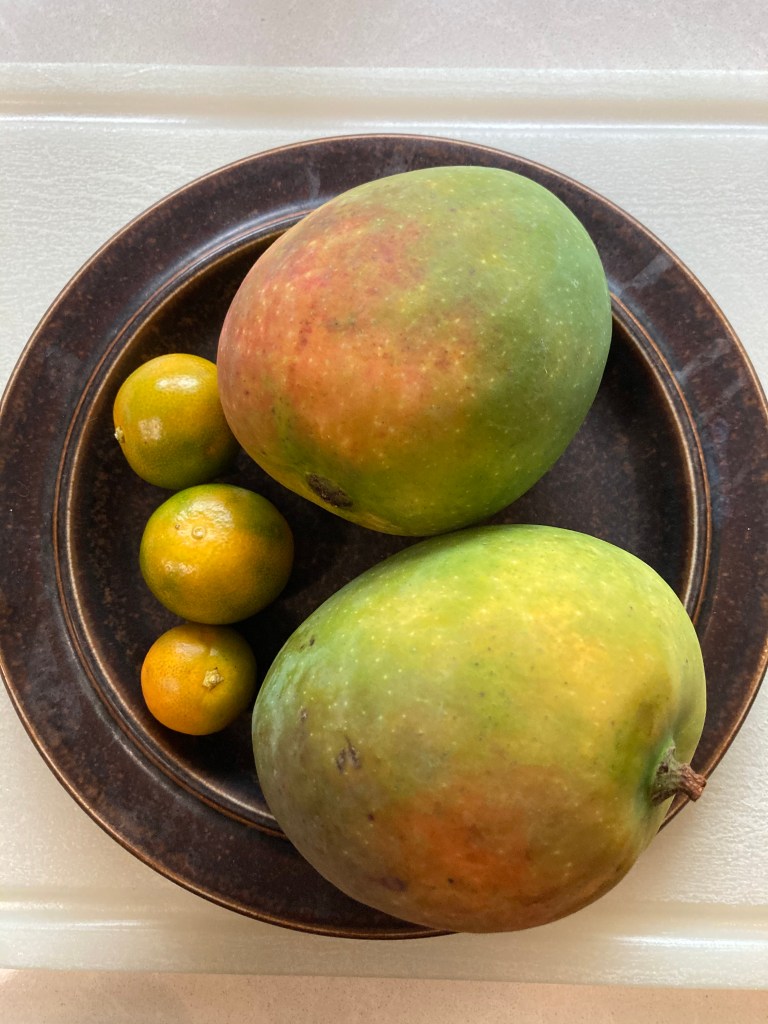 The mangoes came from Ewa, the lady said. Yummy, and a good find because our tree isn’t bearing this year.