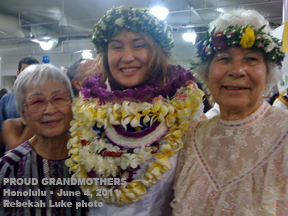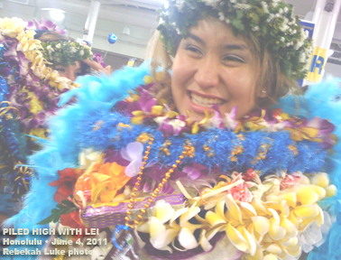 Still giddy with delight and with my new earnings burning a hole in my pocket, I headed to the Diamond Head end of the midway and bought myself a present—a bling-y Pāʻani top with a night-blooming cereus flower.