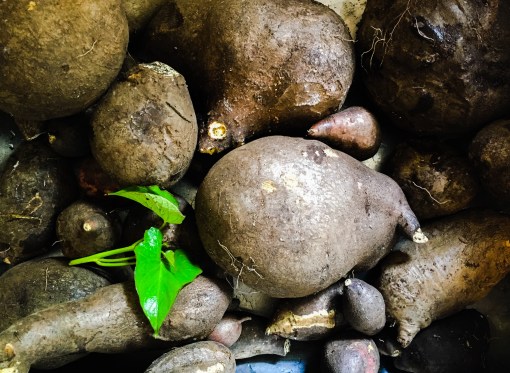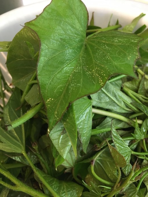 What now? I prepared candied sweet potatoes and an uala leaf and tofu salad for dinner, and I reserved the kou flowers for later when I can organize a day of fabric dyeing and decorating with my artsy friends.