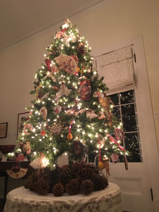 Mary Dominis, of New England, is credited with bringing the first Christmas to Hawaii in 1858. She was the wife of the first Governor. Last night on an evening tour of Washington Place, the official Governor’s mansion in Honolulu, I was charmed by her handmade ornaments.